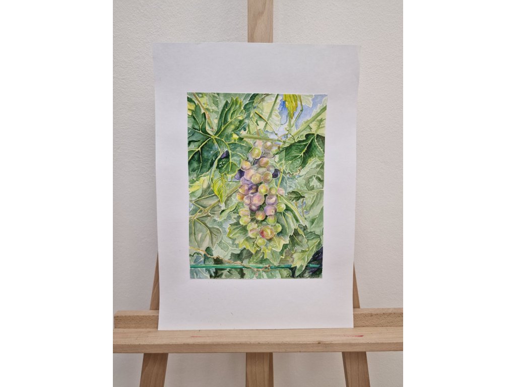 Akvarel, na akvarelovém papíře formátu A4, nalepený na archu formátu A3. Celková velikost je 41,9*29,7, samotný obrázek má 27,7*20,4.